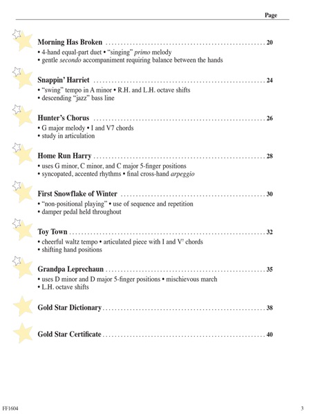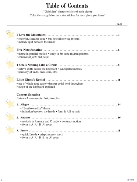 An exciting collection for the elementary pianist that offers performance pieces “with a challenge.” As the title “Gold Star” suggests, these pieces are especially appropriate for recitals and other musical events. The long awaited addition to the Piano Adventures series contains 12 songs and pieces.
