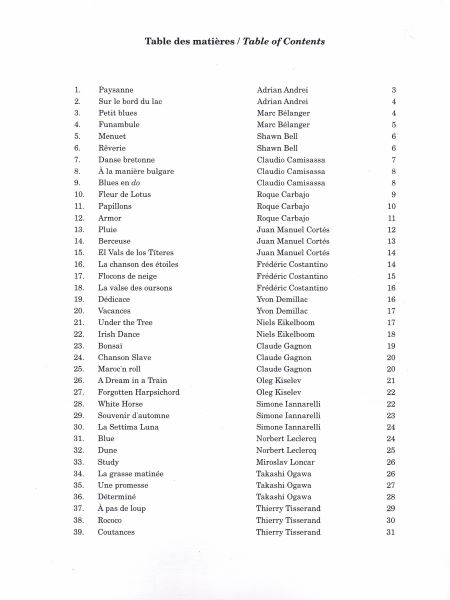 The books in this six volume series are comprised of both new and original compositions and works, which have been previously published by d’OZ. There is a long list of international composers represented and the variety of the musical styles is agreeably wide. What is of a type, is the quality of the music presented. From charming two- line compositions, to more extended works, the scope for musical expression and development is terrific. As weIl as being useful for the student this music is very attractive to play.