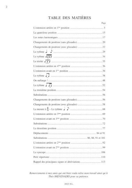 Ce deuxième volume couvre toutes les positions du manche avec ou sans extensions arrière et/ou avant, ainsi que la note harmonique.