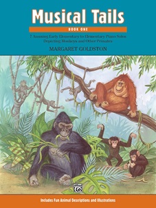 Sept pièces pour piano solo de niveau élémentaire écrites par Margaret Goldston et illustrant des singes et autres primates. Des descriptions amusantes en anglais de ces animaux introduisent chaque pièce.
