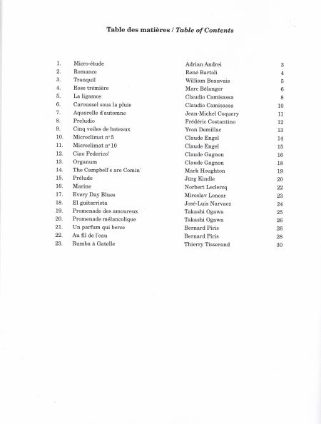 Le catalogue d’OZ regorge de petits trésors écrits pour tous les niveaux par des guitaristes, compositeurs et professeurs totalement dédiés à la cause de la guitare classique. Le titre de la série suggère un portrait optimiste de la pratique de l’instrument dans plusieurs régions du globe et l’étendue de la «famille» de compositeurs qui publient régulièrement chez d’OZ. Ce métissage de genres et de régions colore à l’occasion les pièces d’éléments nationaux qui les distinguent merveilleusement.