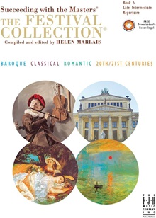 La Festival Collection est une série de huit volumes de répertoire exceptionnel issu des époques baroque, classique, romantique et du XXe/XXIe siècle. Cette série est soigneusement échelonnée, chaque niveau couvrant les besoins techniques de l’apprentissage du piano. La Festival Collection est une série complémentaire à la série Succeeding with the Masters, qui en élargit les sélections de répertoire sans duplication de répertoire. Chaque livre comprend des enregistrements gratuits en ligne de toutes les œuvres pour guider les étudiants dans leur interprétation.