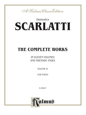 Volume six de l’intégralité des oeuvres de D. Scarlatti publiées par Kalmus en onze volumes. Ce volume contient les suites de sonates classées Longo (L.) 251 à 300.