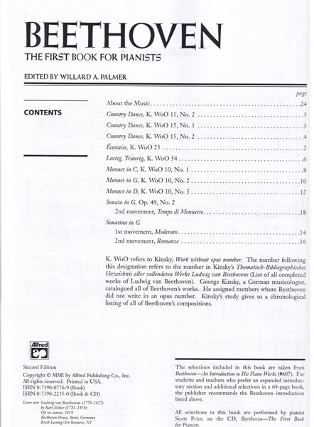 Compilation de pièces faciles, notamment des danses, tirées de Beethoven – The First Book for Pianists.